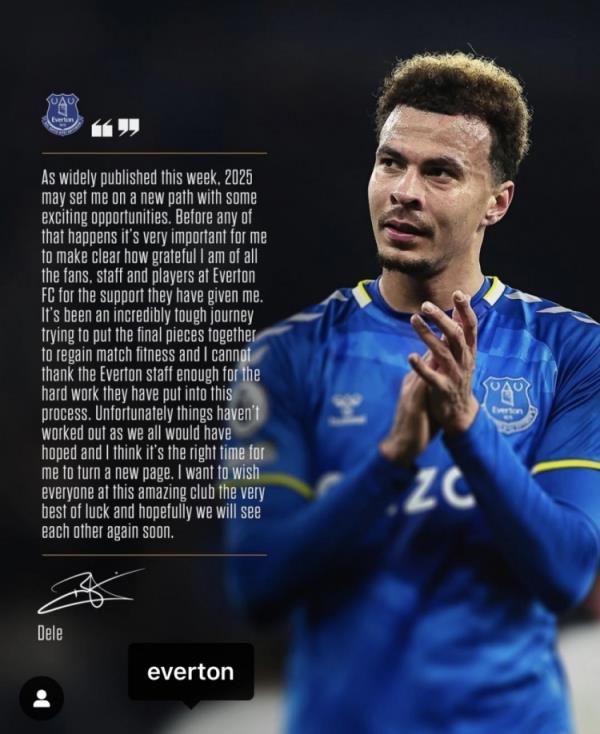 阿里寫道:“正如本周大家廣泛談論的那樣,2025年我可能會走上一條新的道路,因為有一些令人感到興奮的的機會。在這一切發(fā)生之前,我必須要先明確的表達一下我對于所有球迷的感激之情,以及埃弗頓所有工作人員以及球員對我的支持。